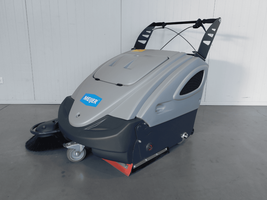 Moeiteloos middelgrote vloeroppervlaktes reinigen, zowel binnen als buiten? Onze Meijer V90 veegmachine kan uitstekend uit de voeten op verschillende ondergronden. Een krachtige accu drijft hem aan en hij doet met een laag geluidsniveau zijn werk.