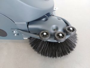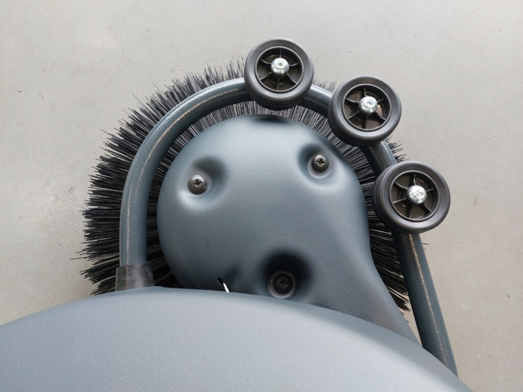 De VP70 is uitgerust met handige rolwieltjes op de stootbeugel, zodat de machine vlak langs de wanden kan werken zonder risico op schade. Dit maakt de machine uitstekend geschikt voor gebruik rondom de glazen wanden van padelbanen, waar een zachte benadering essentieel is.